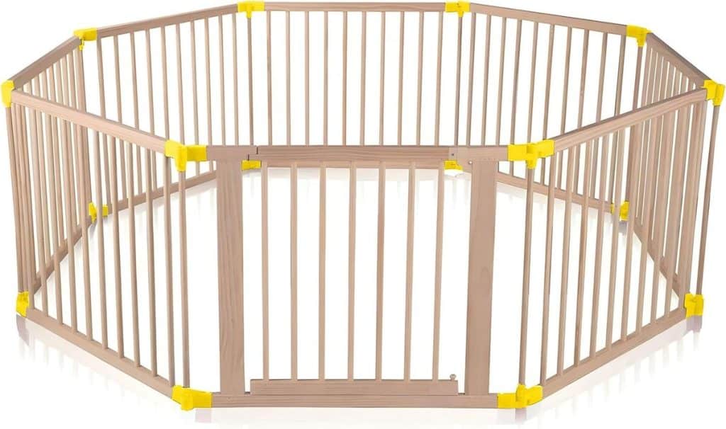 Baby Vivo Parc Bébé Barrière Sécurité Pliable Enfant Protection Porte en Bois - réglable individuellement- 8 Éléments PREMIUMDIMENSIONS: Env. 176 x 176 x 69 cm (LxlxH), Dimensions de la porte: env. 88 x 68,7 cm (LxH), Dimensions des éléments latéraux: env. 88 x 68,7 cm (LxH), surface: environ 3,03 m² SÉCURITÉ: Les emboîtements spéciaux des raccords en plastique, qui courent autour du parc, offrent une sécurité supplémentaire TESTÉ: Le parc et tous les matériaux utilisés sont sans danger pour les enfants, fabriqués et testés selon la norme EN-12227 MULTIFONCTIONNEL: Peut être utilisé comme parc ou barrière, montage très simple, nombreuses options d'installation flexibles grâce à un mécanisme de pression RECOMMANDATION D'ÂGE: Convient aux enfants à 3 années, ne laissez jamais votre enfant sans surveillance dans le parc!150,90 €